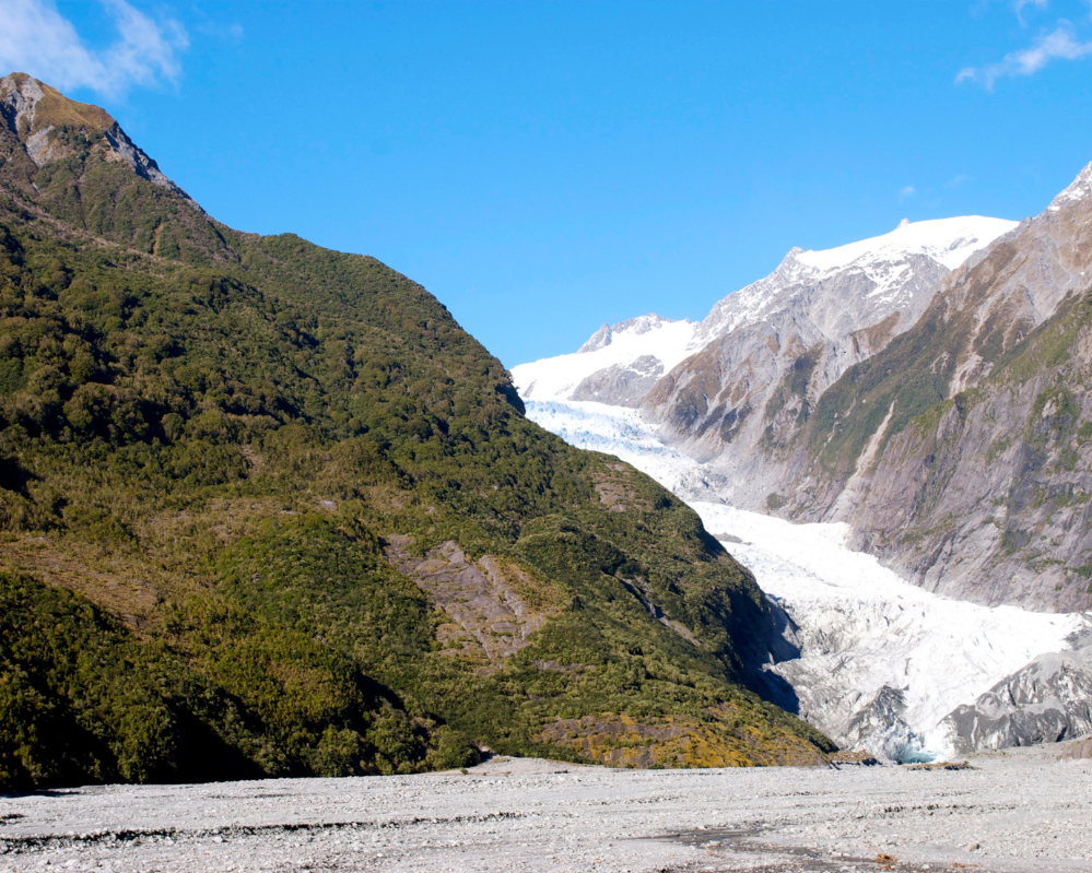 Über das Reiseziel: Der Franz-Josef-Gletscher / Kā Roimata o Hine Hukatere ist ein 12 km langer gemäßigter maritimer Gletscher, der im Westland Tai Poutini Nationalpark an der Westküste der Südinsel Neuseelands liegt. Zusammen mit dem Fox-Gletscher, 20 km südlich, und einem dritten Gletscher, fällt er von den Southern Alps auf weniger als 300 Meter über dem Meeresspiegel ab. Das Gebiet um die beiden Gletscher ist Teil von Te Wahipounamu, einem Weltnaturerbe-Park. Der Fluss, der aus dem Gletscherterminal von Franz Josef hervorgeht, ist als Waiho-Fluss bekannt.