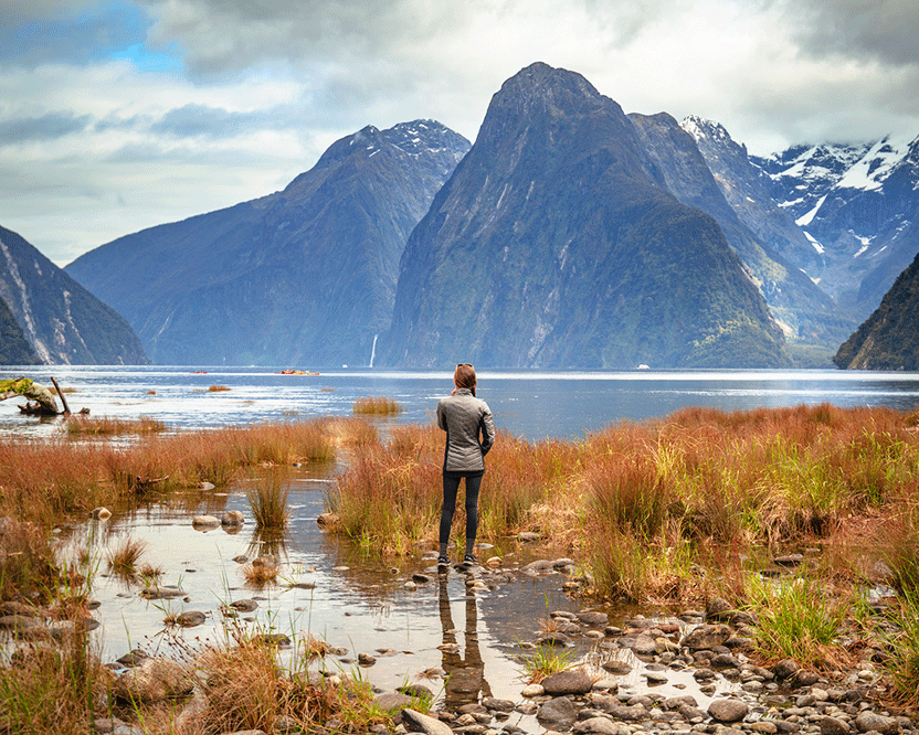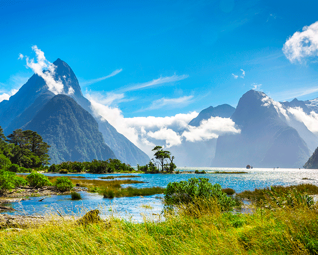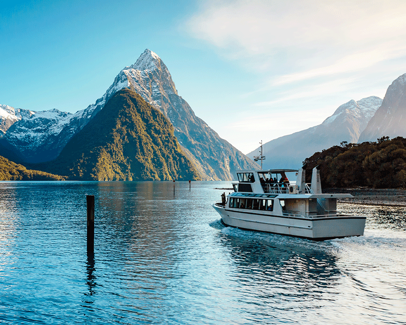 Über das Reiseziel: Milford Sound / Piopiotahi ist ein Fjord im Südwesten der Südinsel Neuseelands im Fiordland Nationalpark, dem Piopiotahi (Milford Sound) Marine Reserve und der Welterbestätte Te Wahipounamu. Es wurde in einer internationalen Umfrage (den Travelers' Choice Destinations Awards 2008 von TripAdvisor) zum weltweit besten Reiseziel gewählt und gilt als das bekannteste Touristenziel Neuseelands. Rudyard Kipling hatte es zuvor als das achte Weltwunder bezeichnet. Der Fjord ist am häufigsten über die Straße (State Highway 94) mit dem Reisebus erreichbar, die in einem kleinen Dorf namens Milford Sound endet. Milford Sound beherbergt eine Vielzahl von Meeressäugern, darunter Robben und die südlichste wilde Population von Großen Tümmlern. Wale, insbesondere Buckelwale und Südkaper, werden aufgrund der Erholung jeder Art zunehmend beobachtet. Pinguine sind ebenfalls häufig im Sound zu finden, der eine Brutstätte für den Fjordlandpinguin ist und daher von BirdLife International als wichtiges Vogelschutzgebiet identifiziert wurde. Aufgrund des hohen Niederschlags in Milford Sound und der Dichte von Salzwasser besteht die Oberfläche von Milford Sound aus einer Schicht Süßwasser, die Tannine aus dem umliegenden Regenwald enthält. Dies filtert einen Großteil des Sonnenlichts, das in das Wasser eindringt, und ermöglicht so das Vorkommen einer Vielzahl von Schwarzen Korallen in Tiefen von nur 10 Metern, was deutlich näher an der Oberfläche ist als üblich.