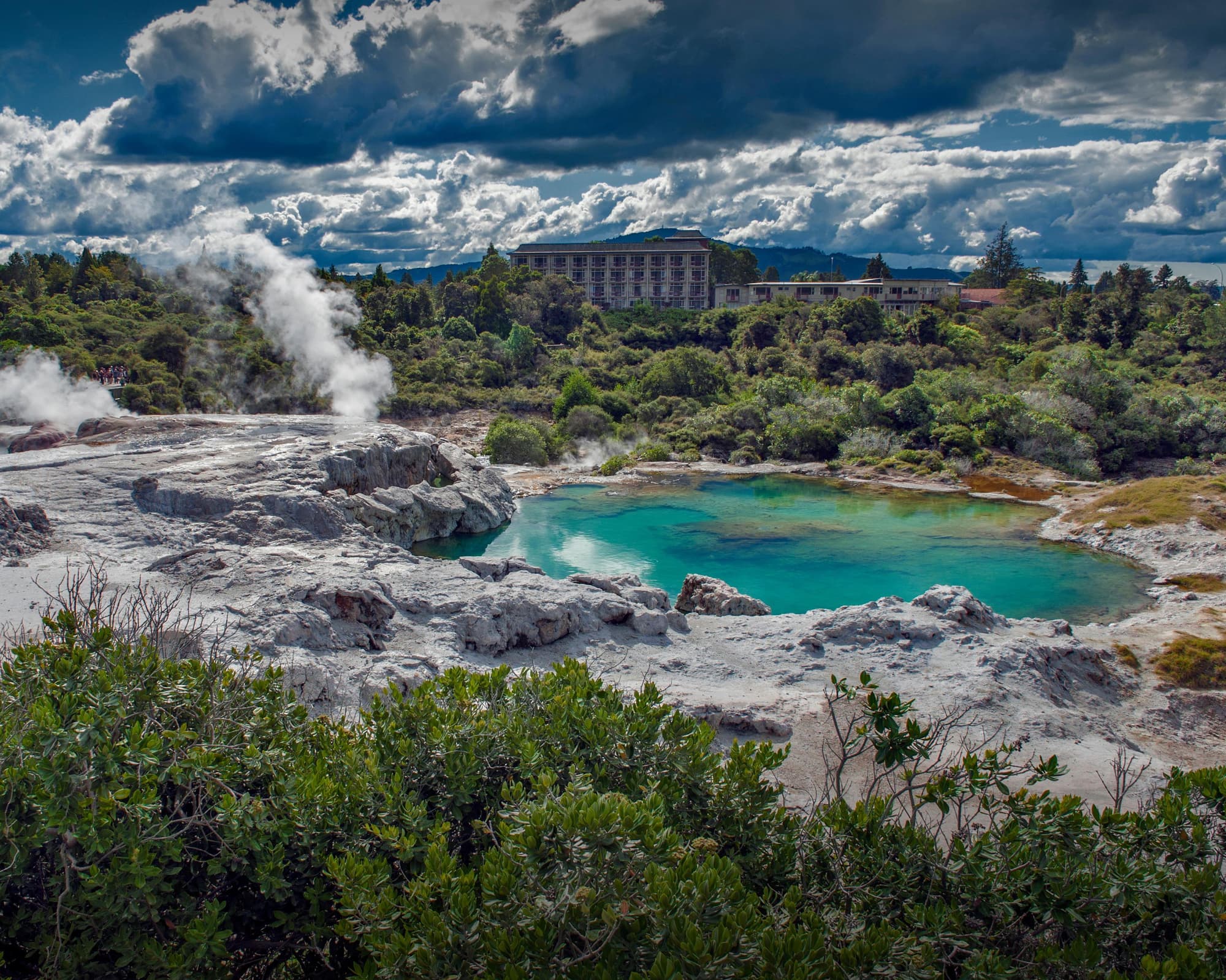 Über das Reiseziel: Willkommen in Te Puia, einem bemerkenswerten Reiseziel im Herzen von Rotorua, Neuseeland. Bekannt für seine atemberaubenden geothermischen Landschaften und die reiche Maori-Kultur, bietet Te Puia Besuchern ein einzigartiges und immersives Erlebnis. Von blubbernden Schlammpools und ausbrechenden Geysiren bis hin zu traditionellen Maori-Aufführungen und exquisiten Schnitzereien verspricht Te Puia eine unvergessliche Reise in die natürlichen und kulturellen Wunder Neuseelands. Eine der Hauptattraktionen in Te Puia ist der Pohutu-Geysir, der größte aktive Geysir der südlichen Hemisphäre. Bis zu 20 Mal am Tag ausbrechend und Höhen von bis zu 30 Metern erreichend, ist der Anblick von Pohutu in voller Kraft wahrhaft beeindruckend. Während Sie das geothermische Tal erkunden, werden Sie auch auf andere faszinierende Merkmale wie heiße Quellen, Silikaterrassen und die berühmten Schlammpools stoßen, wo die Erde mit kochender, blubbernder Aktivität zum Leben zu erwachen scheint. Neben seinen geothermischen Wundern ist Te Puia ein Zentrum der Maori-Kultur und des Erbes. Das New Zealand Maori Arts and Crafts Institute, das sich in Te Puia befindet, ist der Erhaltung und Förderung traditioneller Maori-Künste gewidmet. Hier können Sie Meisterschnitzer und Weber bei der Arbeit beobachten, wie sie kunstvolle Schnitzereien und wunderschöne gewebte Gegenstände herstellen. Verpassen Sie nicht die Gelegenheit, an einer kulturellen Aufführung teilzunehmen, bei der Sie den kraftvollen Haka, melodische Waiata (Lieder) und anmutige Poi-Tänze erleben, die die Geschichten und den Geist des Maori-Volkes vermitteln. Ob Sie die geothermischen Wunder bestaunen oder sich mit dem reichen kulturellen Erbe auseinandersetzen, Te Puia bietet ein fesselndes Erlebnis für alle Besucher. Nehmen Sie sich unbedingt Zeit, das Kiwi Conservation Centre zu erkunden, wo Sie mehr über den ikonischen Kiwi-Vogel Neuseelands und die Bemühungen zu seinem Schutz erfahren können. Mit seiner Mischung aus natürlicher Schönheit und kultureller Tiefe ist Te Puia ein Muss für jeden Besucher, das Ihnen bleibende Erinnerungen und eine tiefere Wertschätzung für das einzigartige Erbe Neuseelands hinterlassen wird.